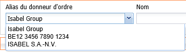 Important : Les alias doivent être configurés aussi bien pour les comptes donneurs d'ordres que pour les comptes réceptionnant/affichant de l'infocompte. Ils sont configurés séparément, ce qui signifie qu'un alias configuré dans l'onglet Infocomptes n'est pas toujours disponible lors de la création d'un nouveau paiement et vice versa.
