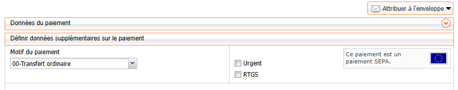 - Urgent - Créer un paiement prioritaire : permet d'exécuter votre paiement avec une priorité haute. Veuillez contacter votre banque pour plus d'informations et les éventuels coûts supplémentaires.