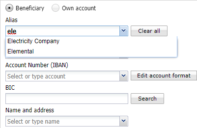 Sélectionnez compte propre si vous désirez créer un paiement avec un compte propre comme bénéficiaire.