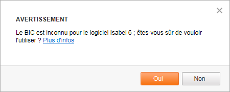 Erreur "BIC est inconnue pour le logiciel isabel 6; êtes-vous sûr de vouloir l'utiliser ?" lors de la création d'un paiement