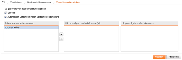 in de Verwerkingsopties, selecteer de Potentiële ondertekenaars en gebruik de pijltjes knop om deze toe te voegen aan de Uit te nodigen ondertekenaar(s)