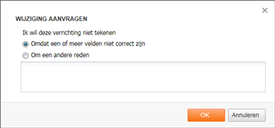 Als ondertekenaar heeft de optie om een wijziging aan te vragen en het ondertekenen te weigeren.