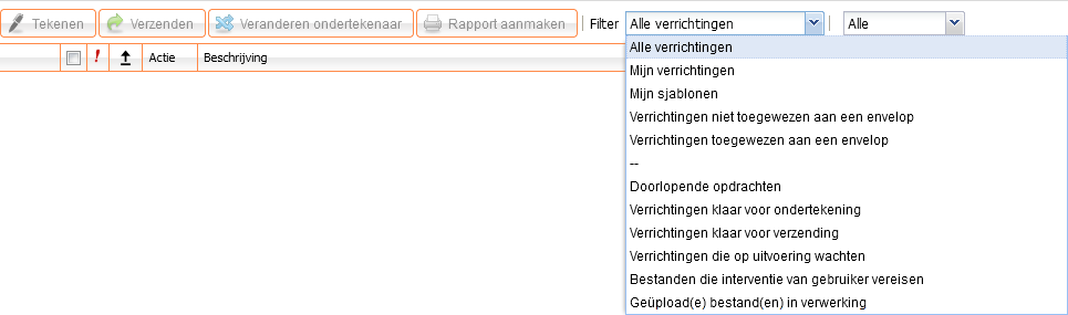 Selecteer de verrichtingen die u wenst te verzenden