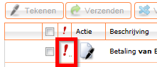 Een dringende verrichting wordt getoond door een rood uitroepteken.