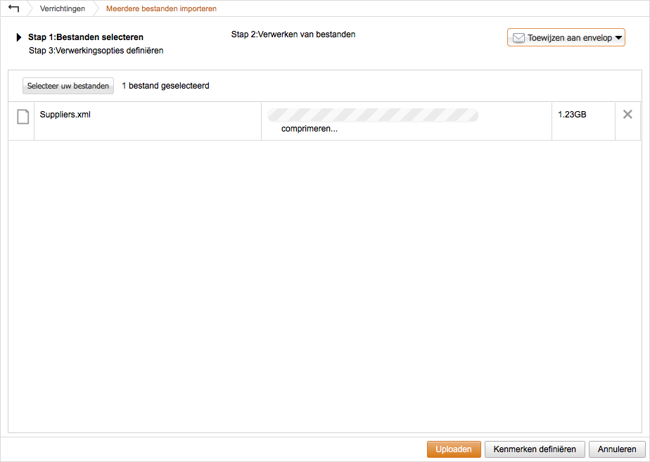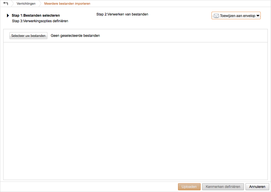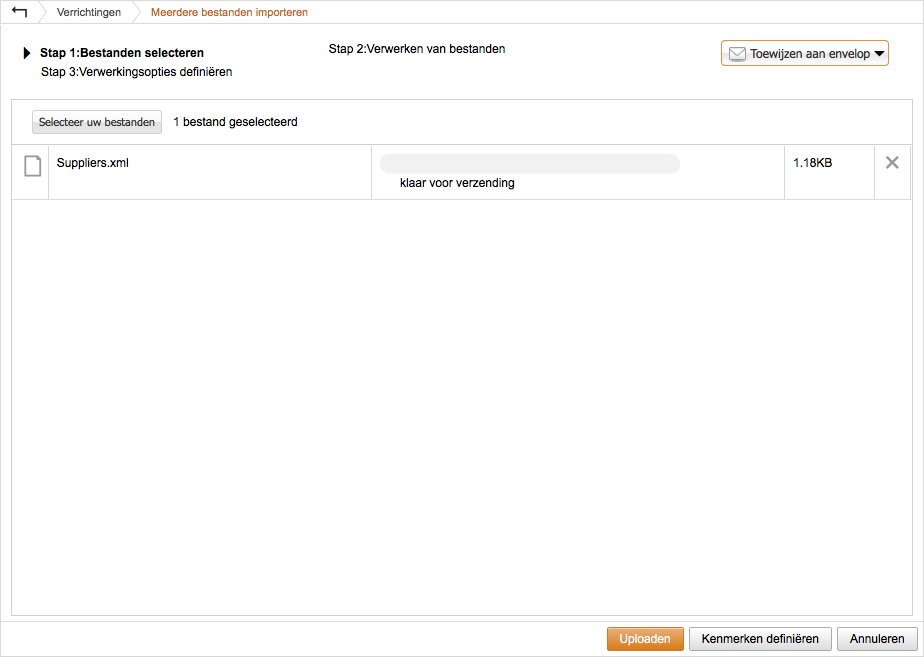 - U kunt een bestand nu toevoegen aan een Envelop. Of u kunt later uw enveloppen beheren in de tab Verrichtingen.