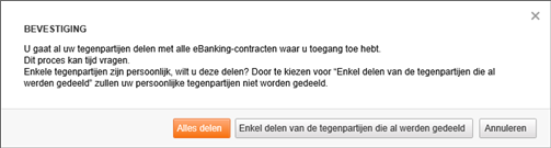 - Alles delen: Dit zal al uw tegenpartijen delen met alle voor u toegankelijke eBanking contracten.