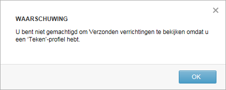 U krijgt de waarschuwing "U bent niet gemachtigd om Verzonden verrichtingen te bekijken omdat u een 'Teken'-profiel hebt".