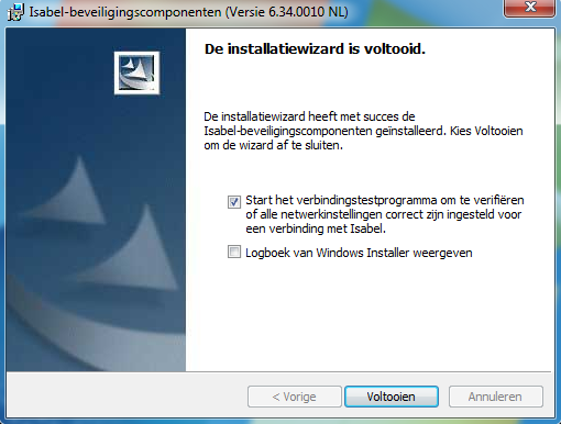 - Het verbindingstestprogramma starten (aanbevolen): hiermee kan een eerste indicatie worden gegeven of extra aanpassingen nodig zijn aan uw firewall of proxy instellingen. Gelieve contact op te nemen met uw systeembeheerder indien één van deze tests faalt.
