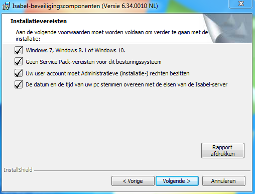 Het installatieprogramma zal de systeemvereisten verifiëren en de resultaten weergeven in een rapport.