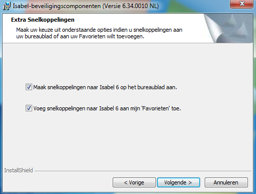 Na de installatie van de Isabel 6-Beveiligingscomponenten krijgt u volgende opties: